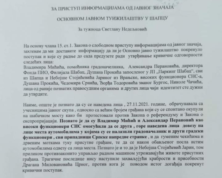 Predstavnici gradskih odbora PSG, SSP, NS i DS podneli su danas Osnovnom javnom tužilaštvu u Šapcu zahtev za pristup informacijama od javnog značaja. PSG,...20. dec