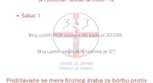 Kovid 19: Juče jedan pozitivan uzorak u Šapcu
