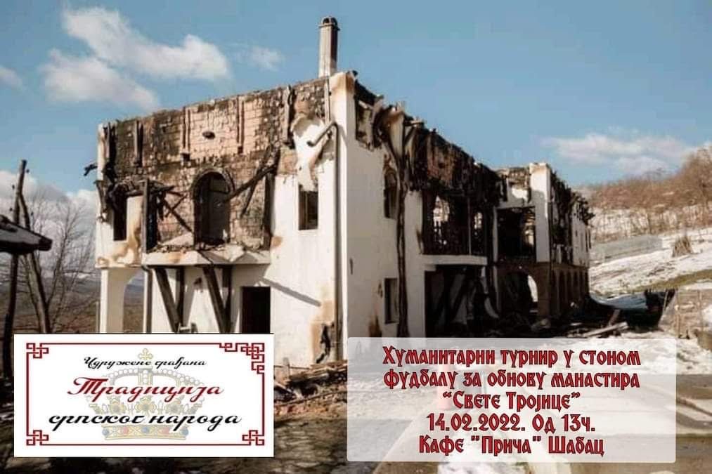 Udruženje “TRADICIJA SRPSKOG NARODA” organizuje humanitarni turnir u stonom fudbalu- u Kafeu “Priča, preko puta Medicinske škole u Šapcu, u ponedeljak 14. februara od 13 do 20 časova. Sav prihod će biti uplaćen za obnovu manastira “Svete Trojice” Bjele Vode kod Ljubovije